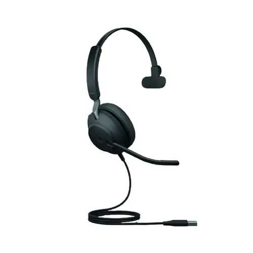 The Jabra Evolve2 40 Mono Headset is a corded headset with exceptional audio, outstanding noise isolation and superior comfort. The Jabra Evolve2 40 Mono Headset includes an advanced digital chipset and three strategically placed microphones for 35% less background noise.