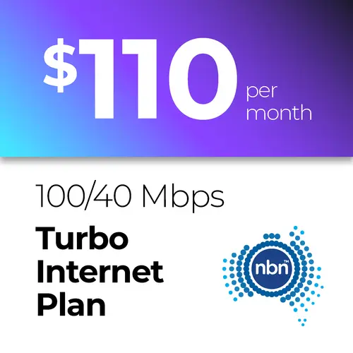Our NBN 100/40 Mbps Turbo Internet Plan plan with $0 setup fee and no long-term lock-in contract. Business grade internet delivered on Australia’s National Broadband Network (NBN). Connect better and benefit from cloud-based services.