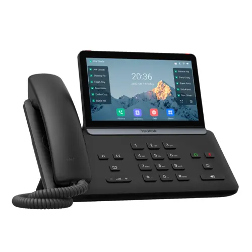 The Yealink SIP-T87W IP Phone is especially designed for busy executives and professionals, featuring a 7-inch multi-point touch screen which allows you to easily find a comfortable viewing angle and provides effortless navigation with just one touch.